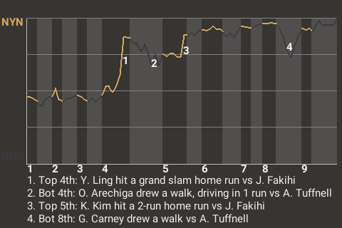 (5, 4th Inning off J. Fakihi, 3 on, 1 out)
