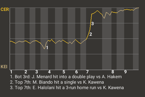 (3, 7th Inning off K. Kawena, 2 on, 0 outs)