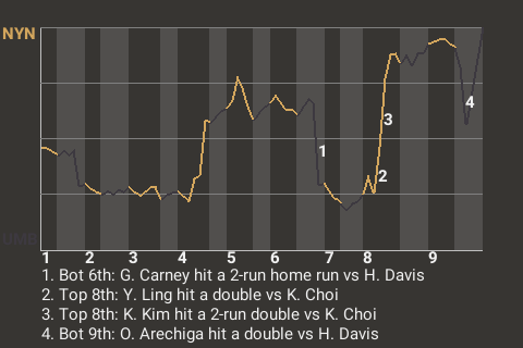 (9, 8th Inning off K. Choi, 1 on, 1 out)