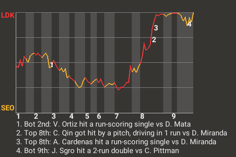 (5, 8th Inning off D. Miranda, 3 on, 1 out)