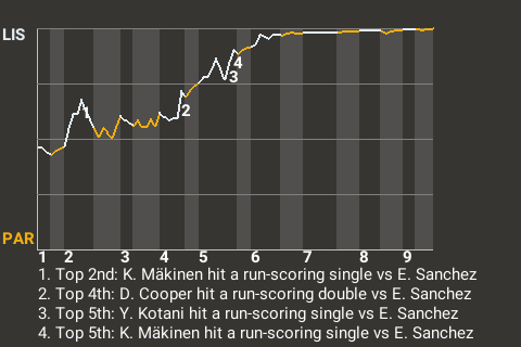 (1, 6th Inning off E. Sanchez, 1 on, 0 outs)