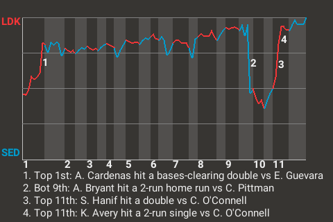 (8, 11th Inning off C. O'Connell, 1 on, 0 outs)