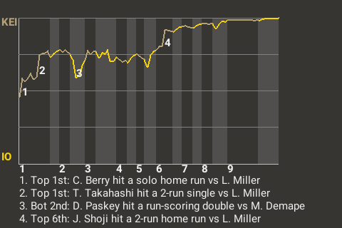 It could have been a different outcome for Keiper, had it not been for Toyokazu Takahashi, the 25-year old shortstop . Takahashi contributed a 2-run single in the top of the first inning to put Keiper up, 3-0.