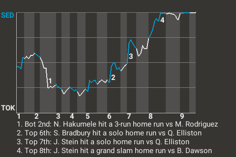 3 (11, 5th Inning off Q. Elliston, 0 on, 1 out; 7th Inning off Q. Elliston, 0 on, 0 outs; 8th Inning off B. Dawson, 3 on, 1 out)