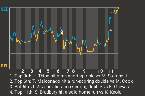 (1, 11th Inning off K. Keola, 0 on, 0 outs)