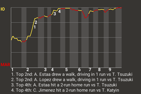 (3, 8th Inning off B. Lisimba, 0 on, 0 outs)