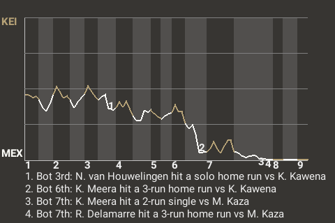 2 (5, 1st Inning off K. Kawena, 0 on, 0 outs; 7th Inning off M. Kaza, 1 on, 0 outs)