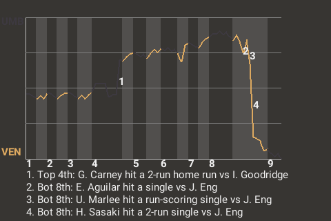 Ballpark: Venus Stadium Weather: Partly Cloudy (57 degrees), wind blowing in from center at 12 mph Start Time: 7:05 PM Time: 2:51 Attendance: 20831 |