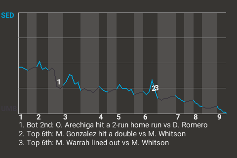 The Shadows got a big at-bat from catcher Omar Arechiga. For the game, Arechiga went 1 for 3 with a home run. He drove in 2 runs and scored once. In the bottom of the second, with a runner on 1st, he stroked a 2-run home run. His 6th home run of the season gave Umbriel a 2-0 lead.