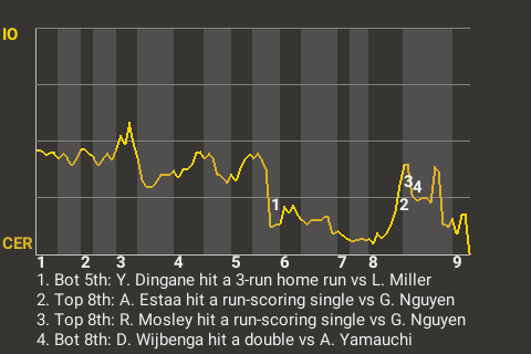 2 (15, 6th Inning off J. Kim, 0 on, 0 outs; 8th Inning off G. Nguyen, 0 on, 1 out)
