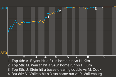 (15, 4th Inning off H. Kim, 0 on, 0 outs)